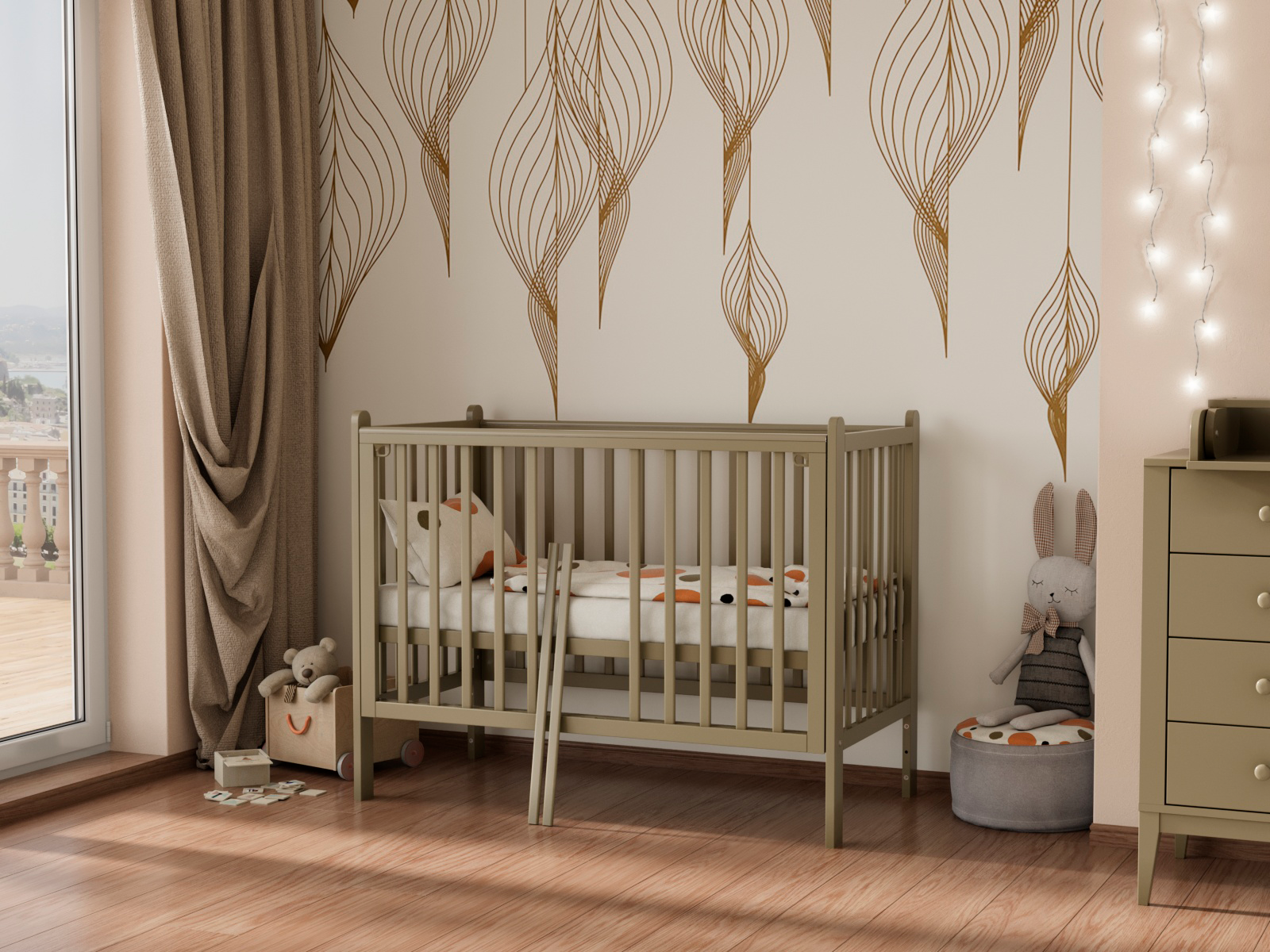 Конструкция кроватки позволяет быстро и бесшумно снять и поставить боковую стенку.