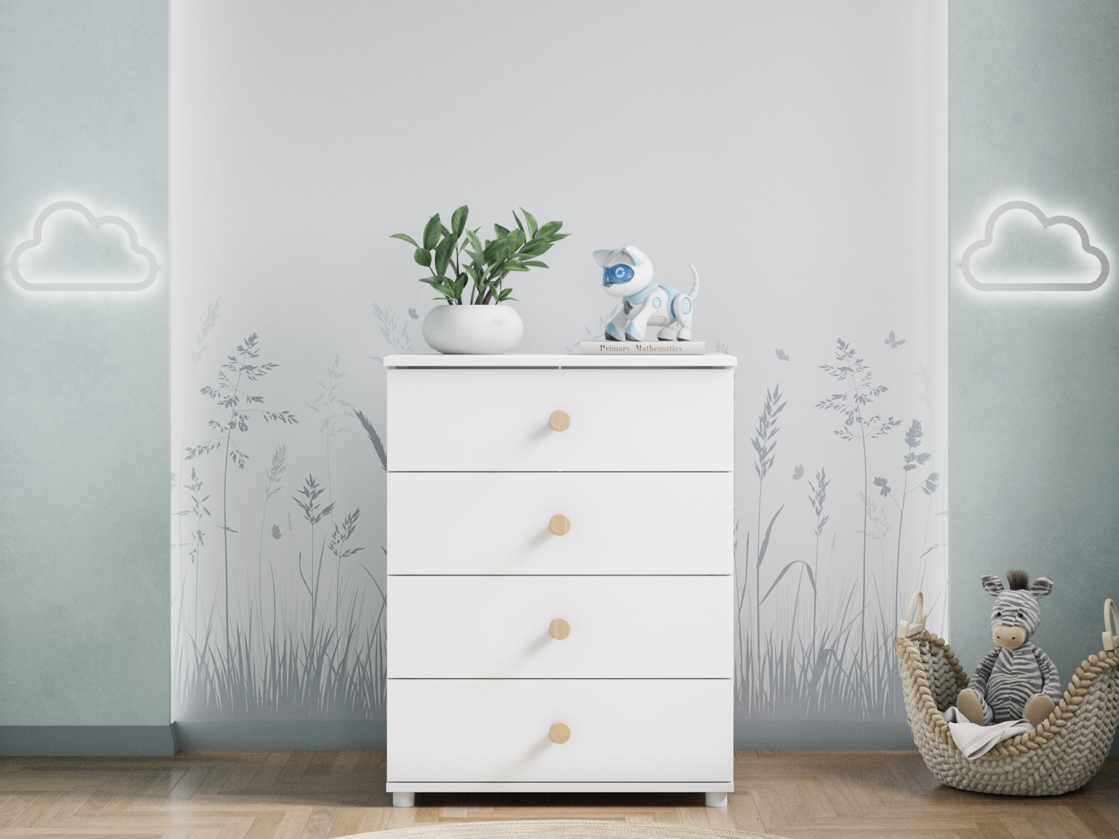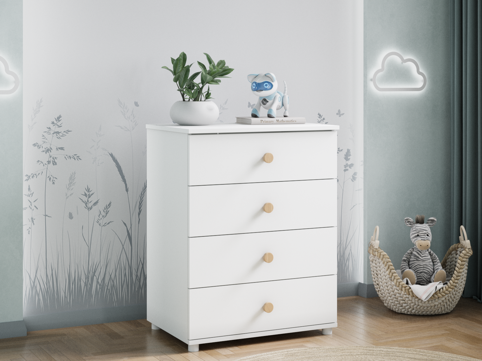 Ручки комода изготовлены из натурального бука.