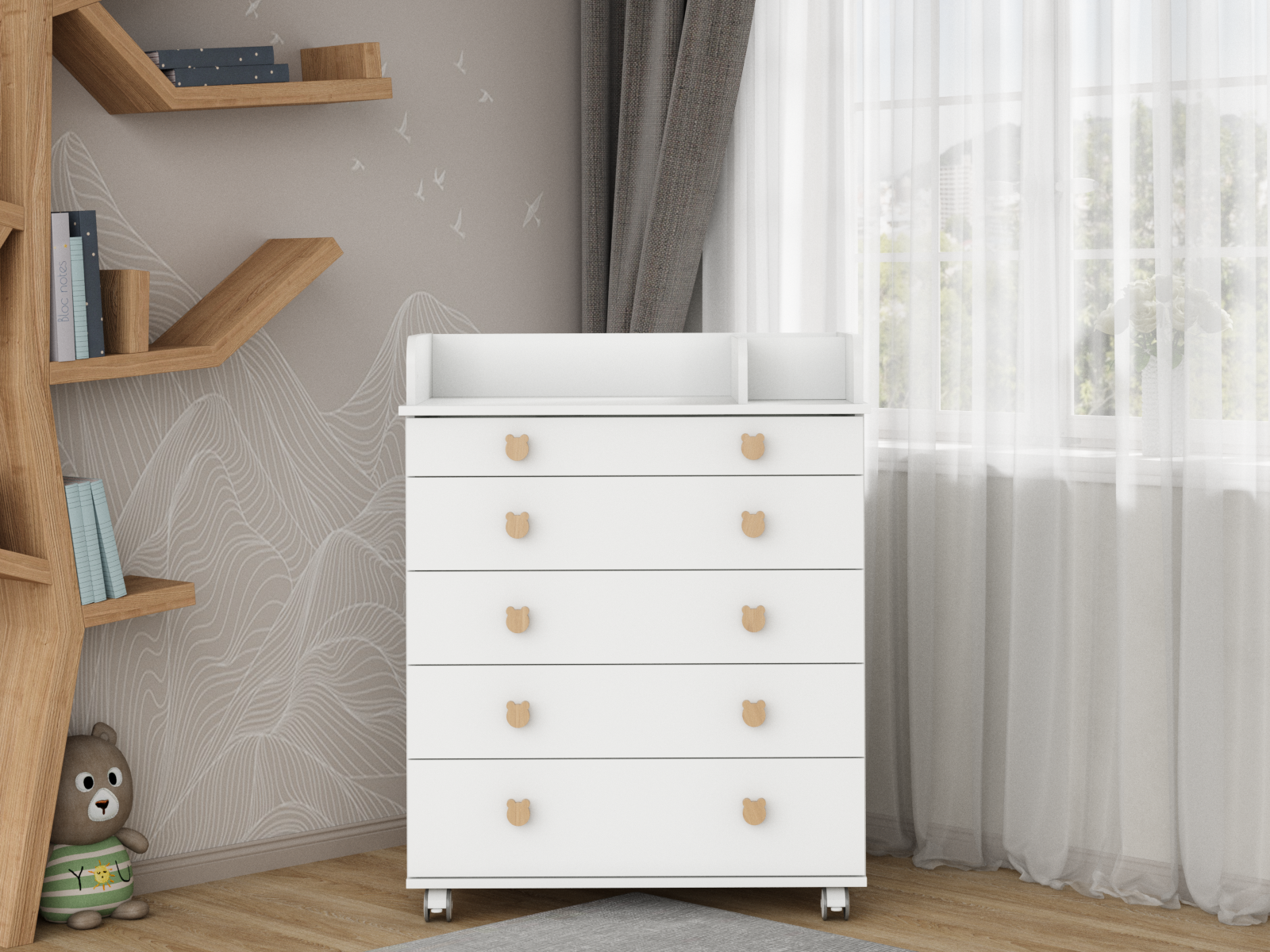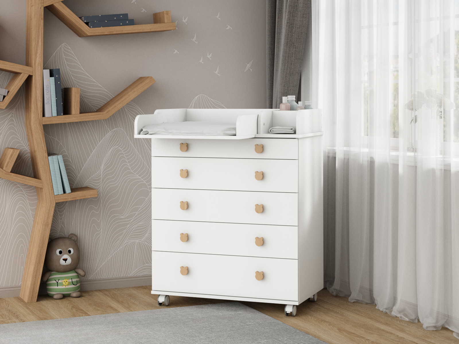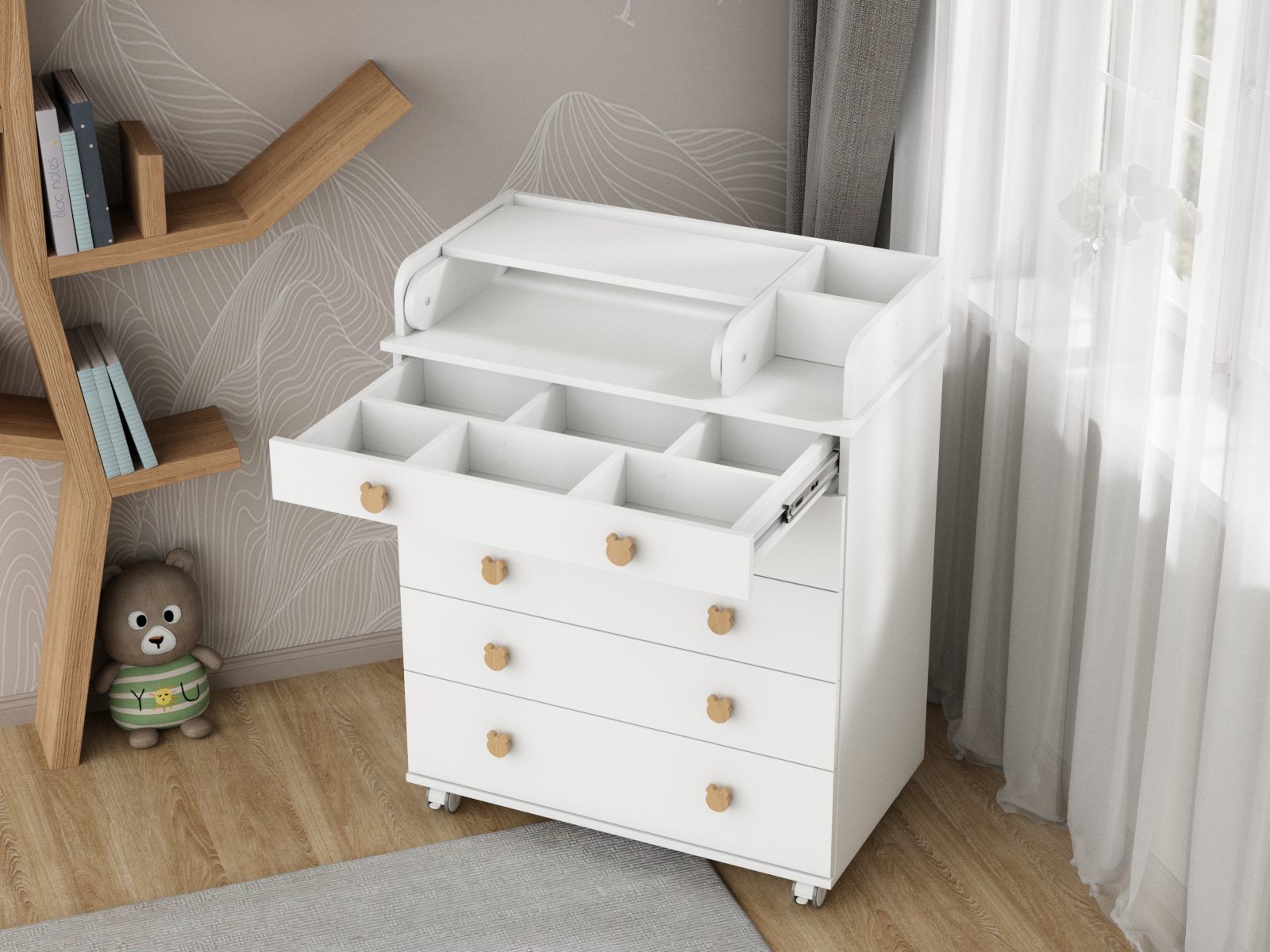 Комод с откидным пеленальным столиком Incanto Мишка цвет белый