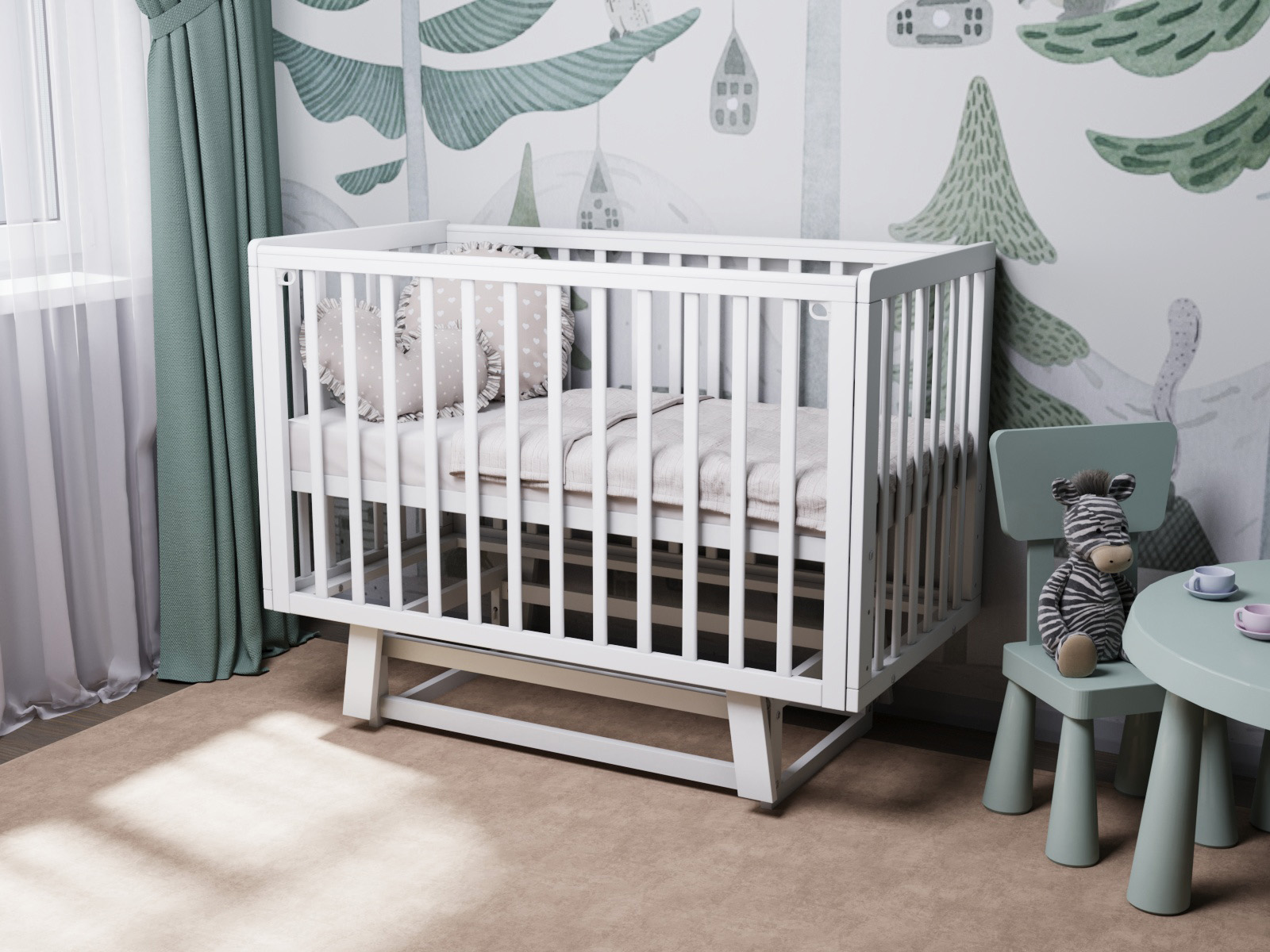 Кроватка оснащена маятником продольного качания для мягкого укачивания малыша, которое более точно воспроизводит движение укачивания на руках у взрослого.
