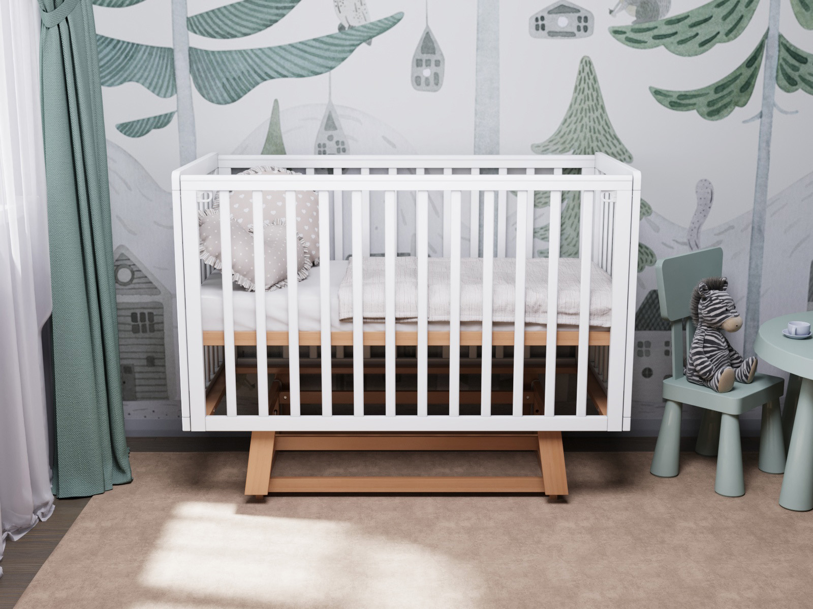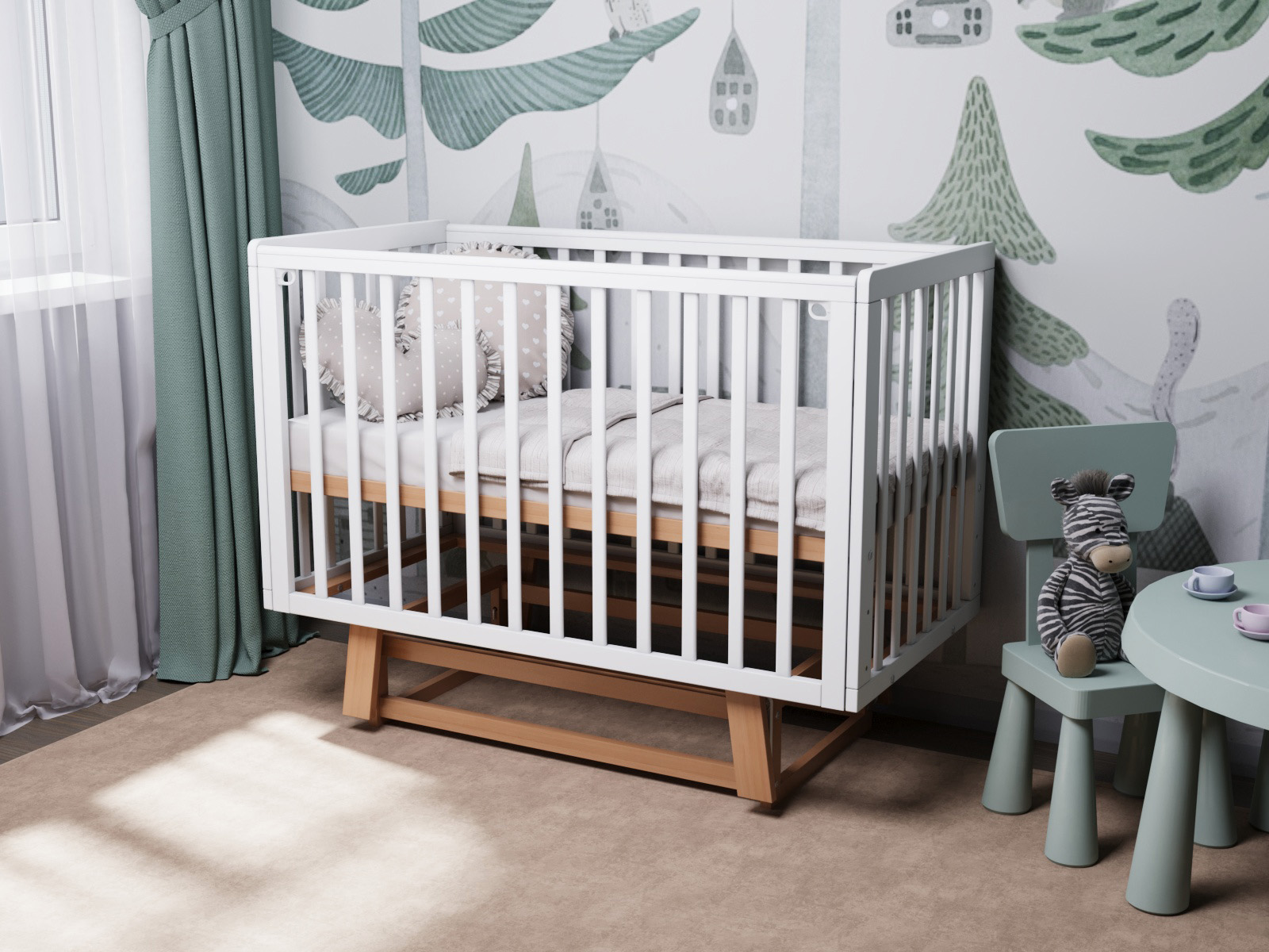 Кроватка оснащена маятником продольного качания для мягкого укачивания малыша, которое более точно воспроизводит движение укачивания на руках у взрослого.