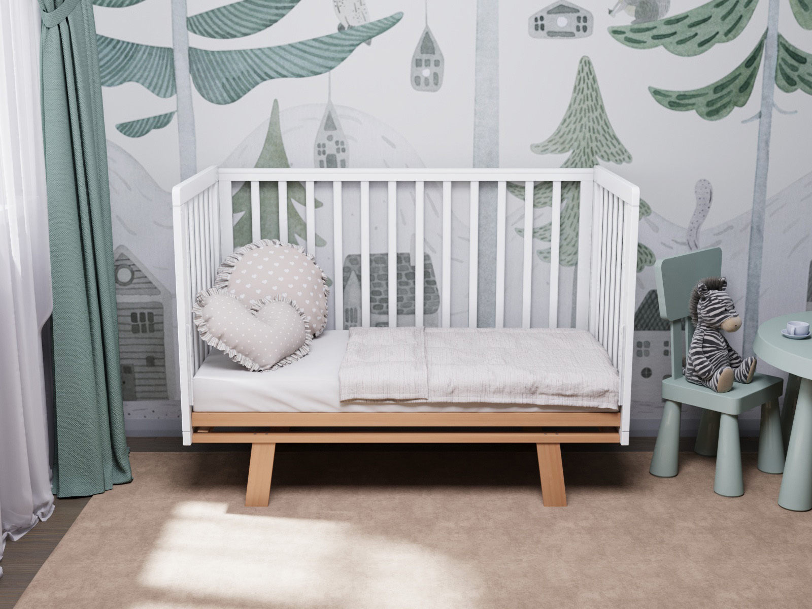 Верхние планки оснащены силиконовыми накладками, чтобы малыш не повредил первые зубки и поверхность кроватки.