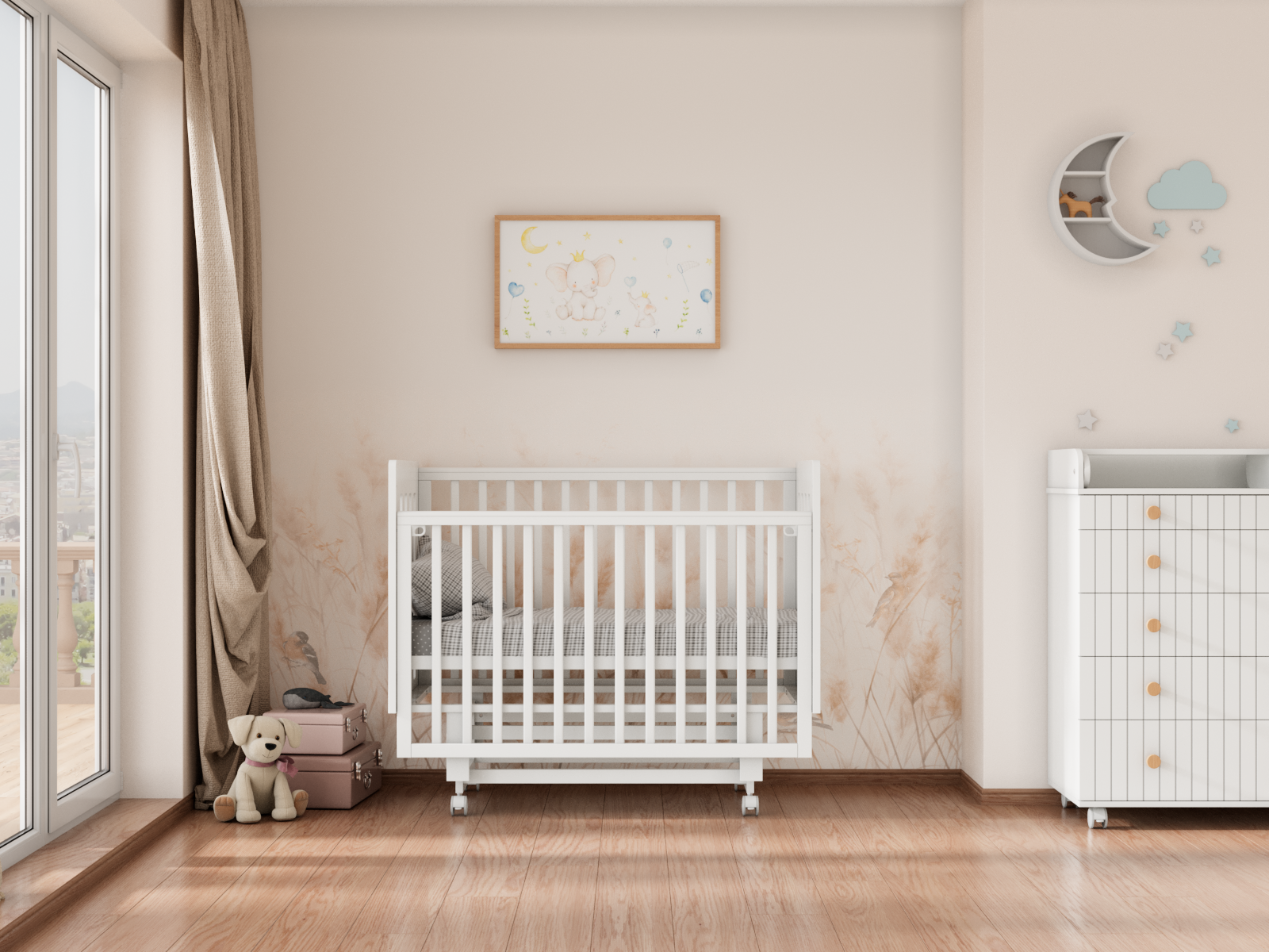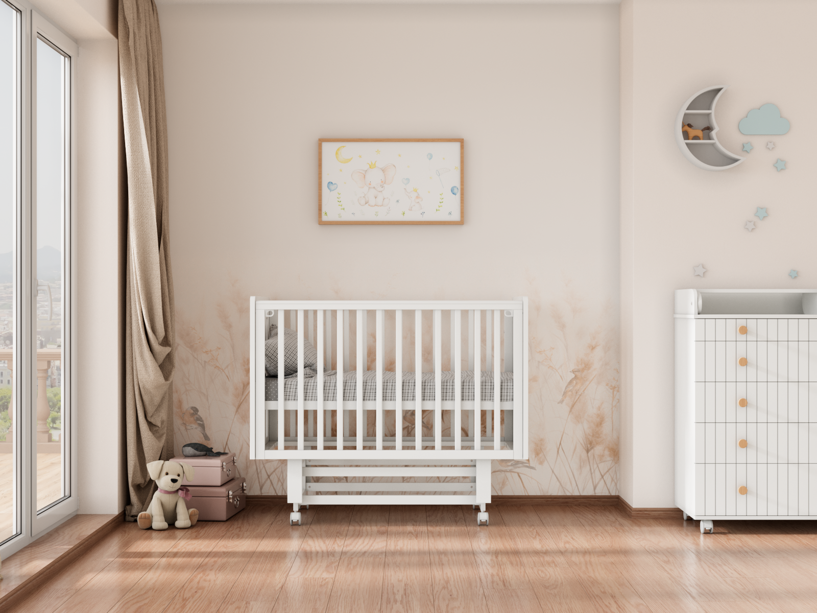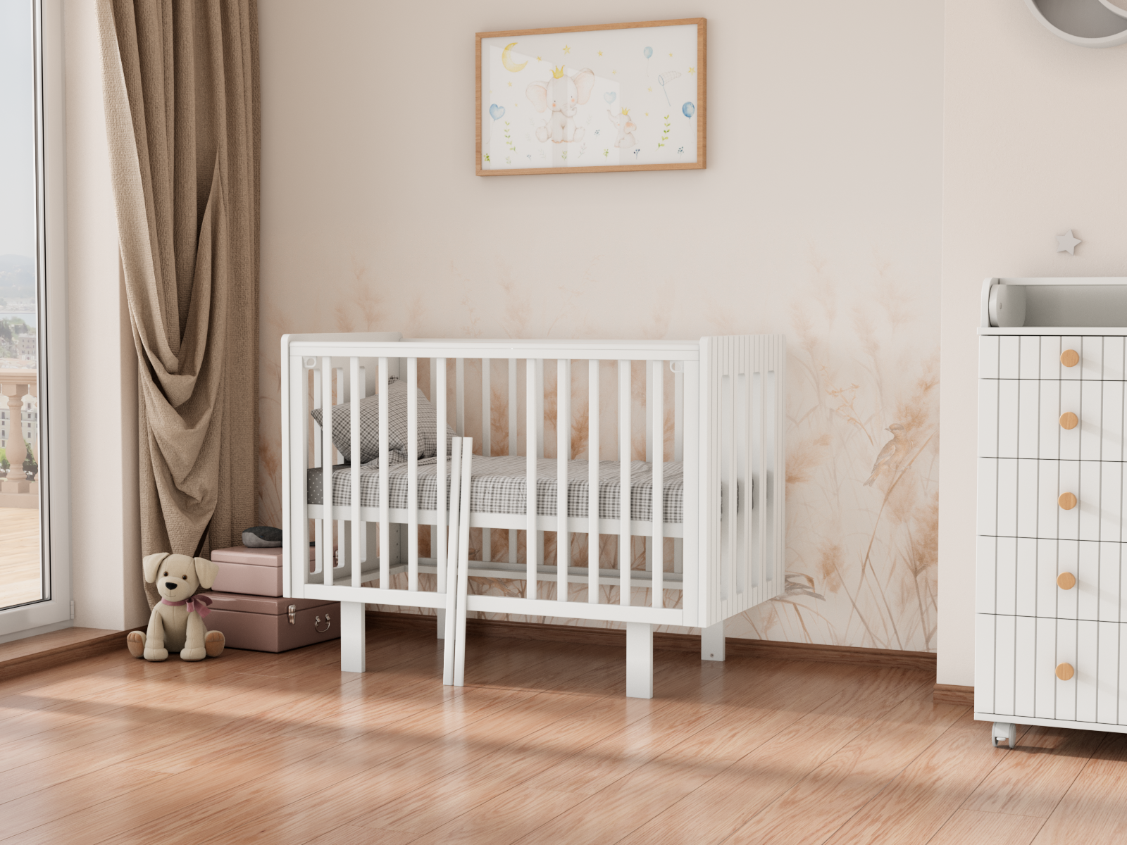 Верхние планки оснащены силиконовыми накладками, чтобы малыш не повредил первые зубки и поверхность кроватки.