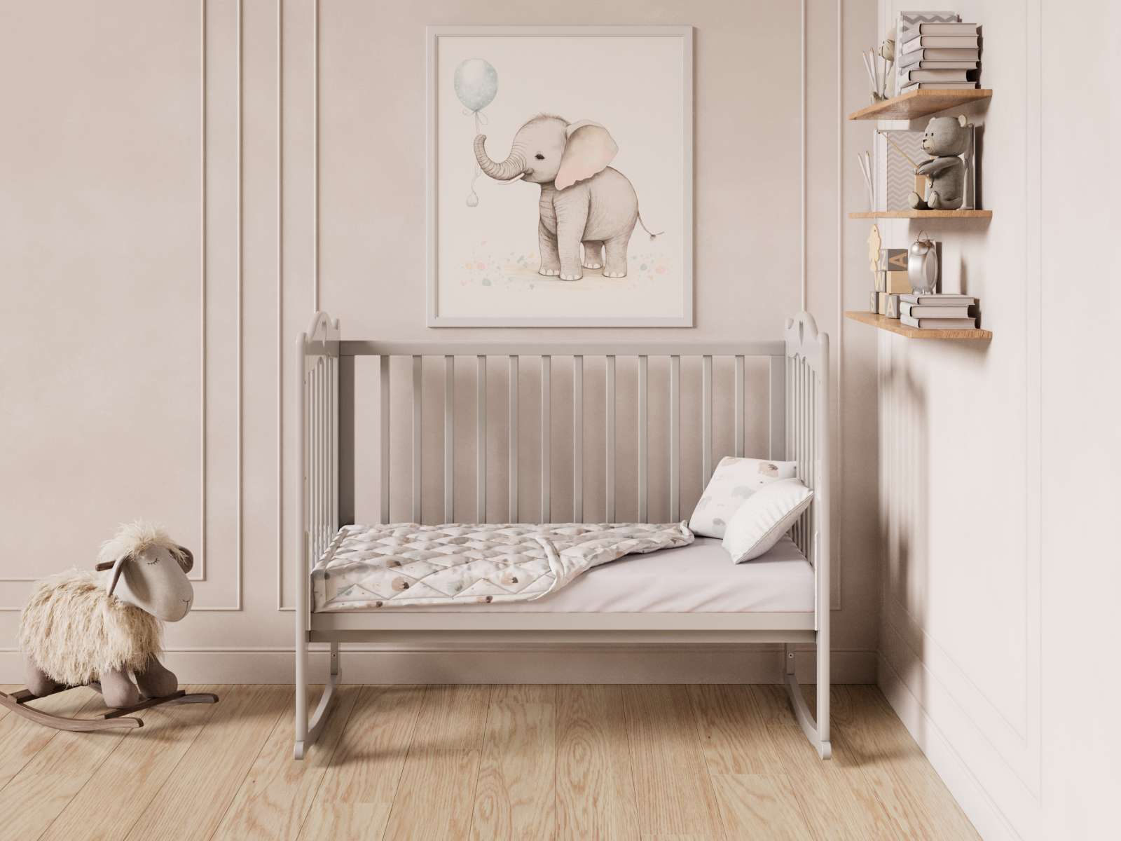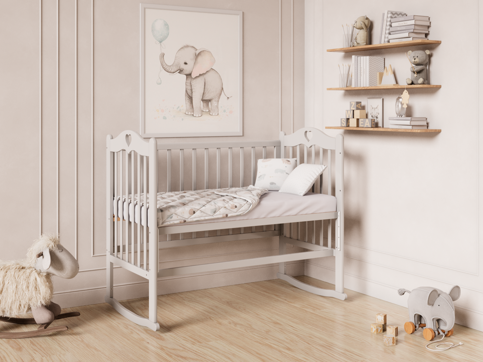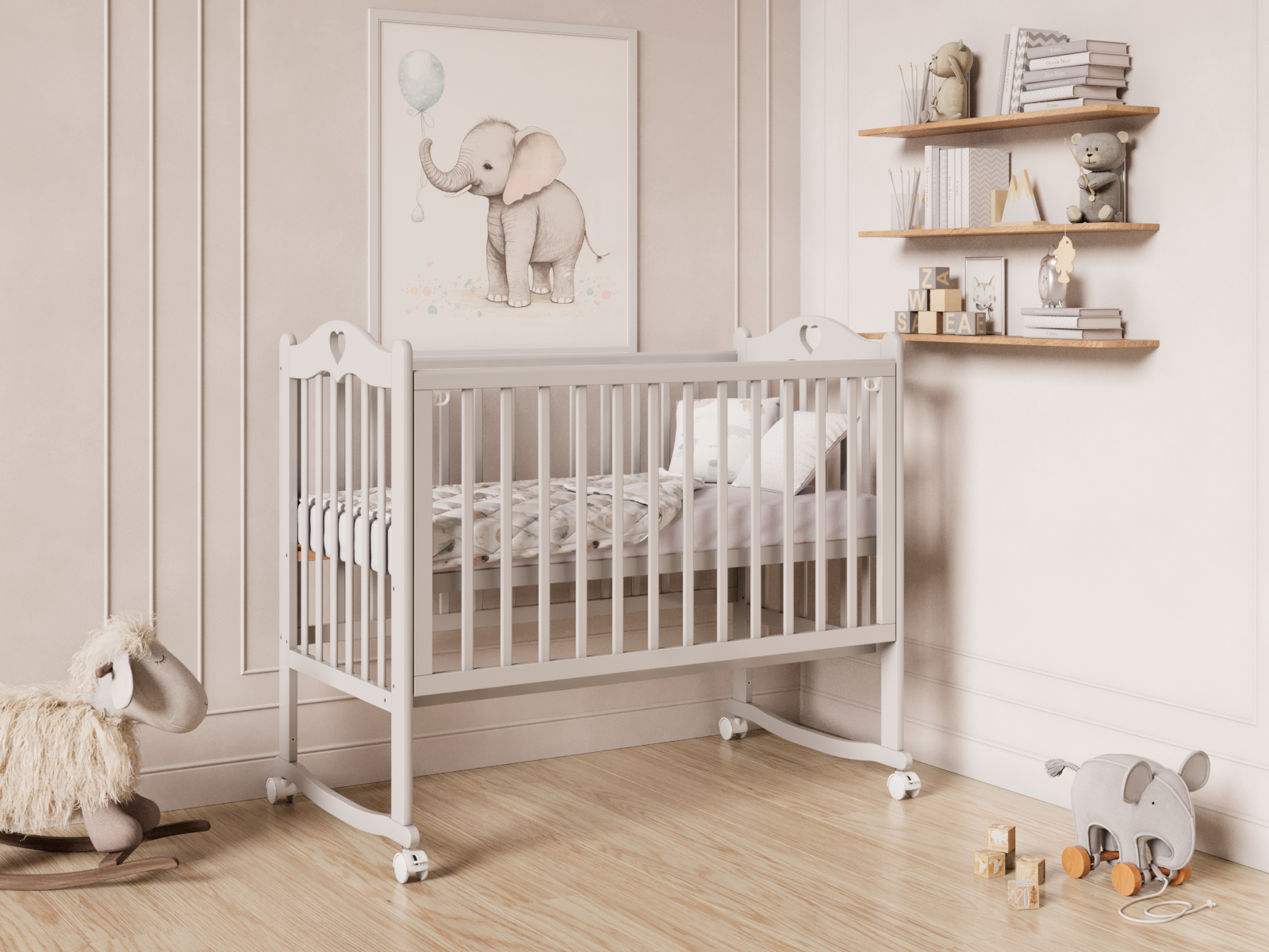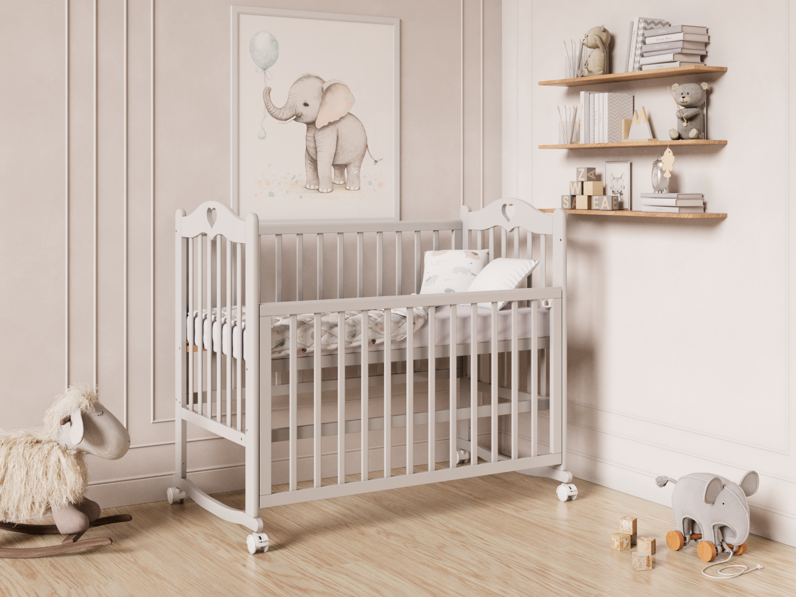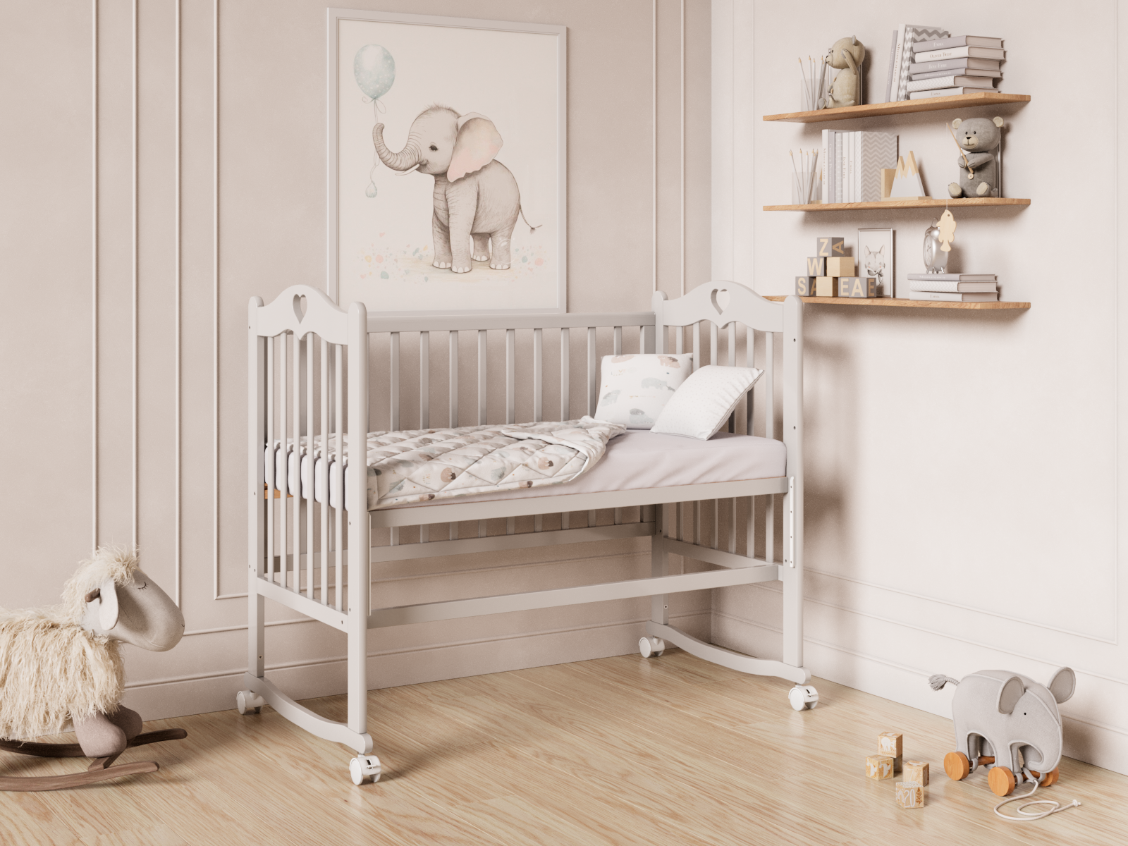 Кроватку можно использовать в двух вариантах: как кроватку-качалку, или как кроватку на колесах. Для этого достаточно просто снять или поставить колеса. Роликовые опоры помогут легко перемещать кроватку на нужное место, а укачивающий механизм подарит малышу по настоящему крепкий сон.