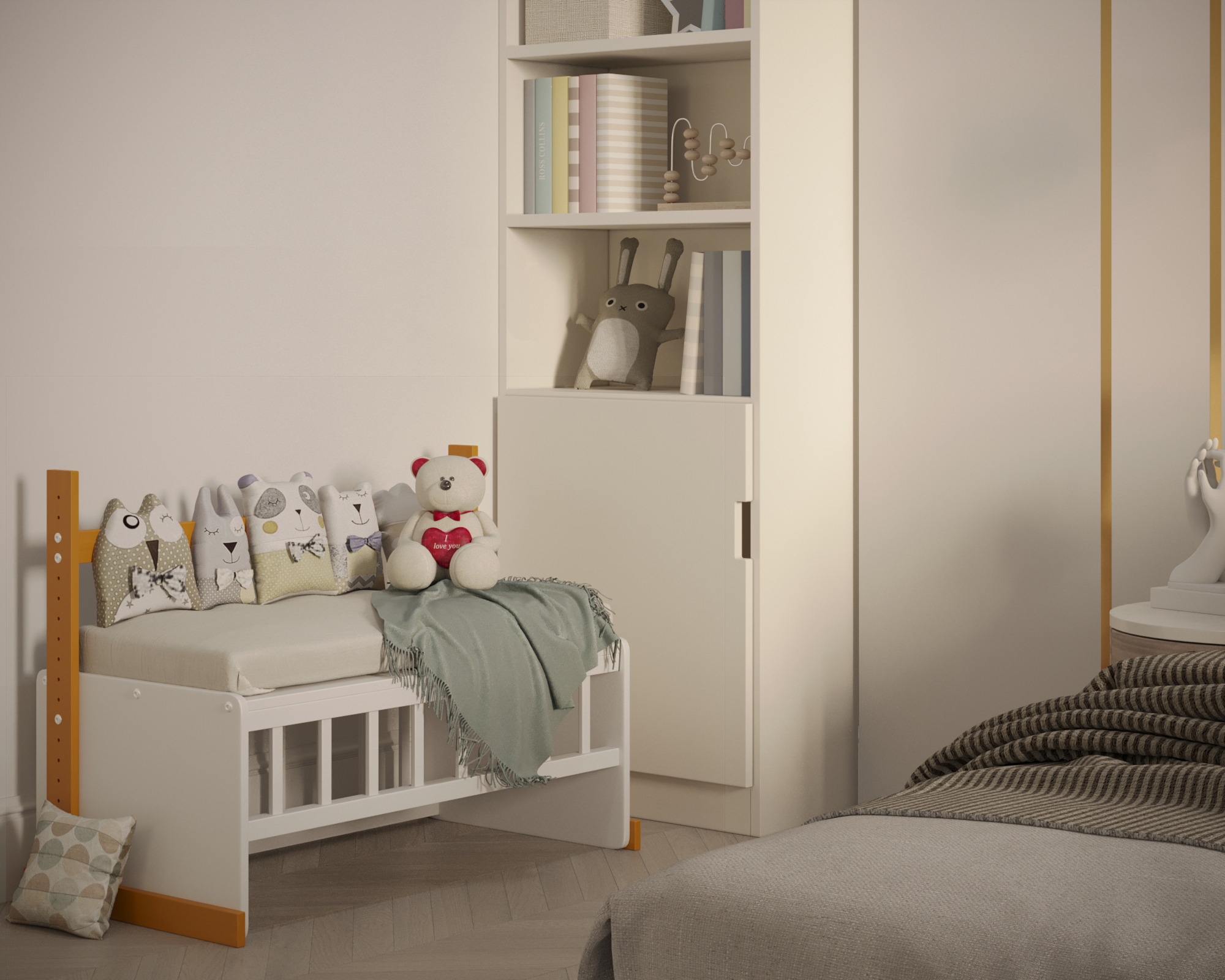 Ее можно трансформировать в ящик для игрушек, диванчик для подросшего малыша или письменный стол.